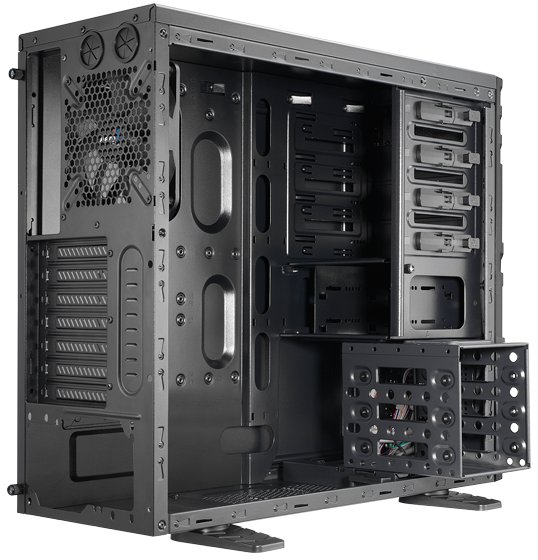 Il Vs-4, serie PGS-V è allo stato attuale uno degli chassis con il miglior rapporto prezzo / prestazioni presenti sul mercato, e può vantare ampia espandibilità e versatilità. Caratteristica chiave di questo robusto e solido chassis in acciaio SGCC da 0,5mm è certamente la colorazione nera degli interni e la possibilità di orientare la gabba di montaggio dei dischi fissi in 3 direzioni. In questo modo i dischi fissi e i relativi cavi possono essere posizionati a piacimento secono il gusto e le necessità degli utenti.